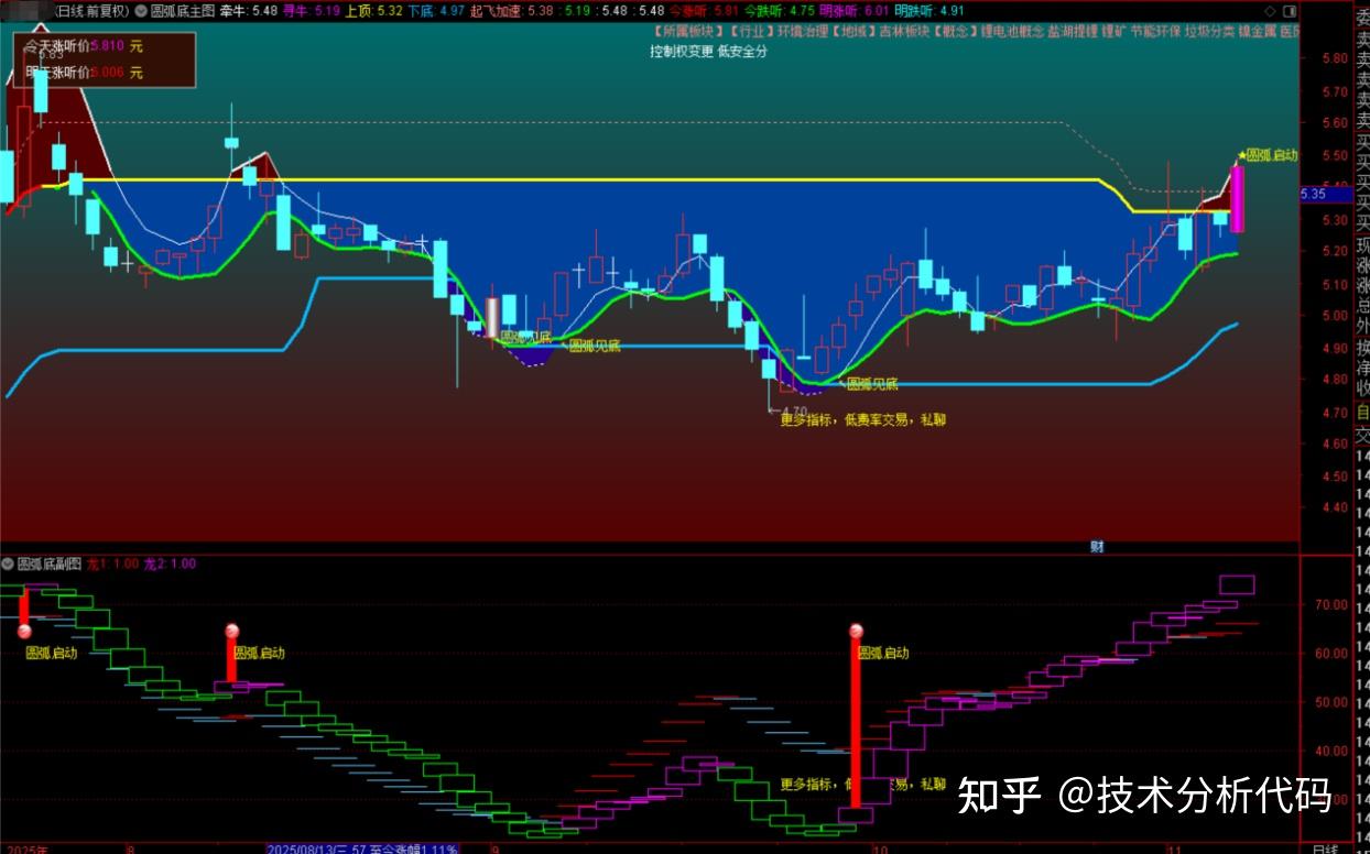 DRAWTEXT(CROSS(牵牛,下底),下底,'↖圆弧见底'),COLORYELLOW;