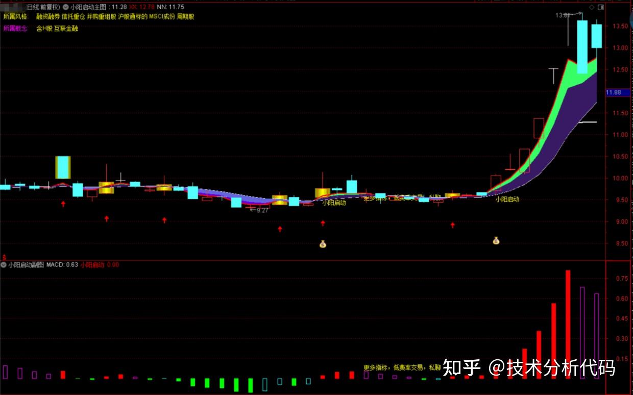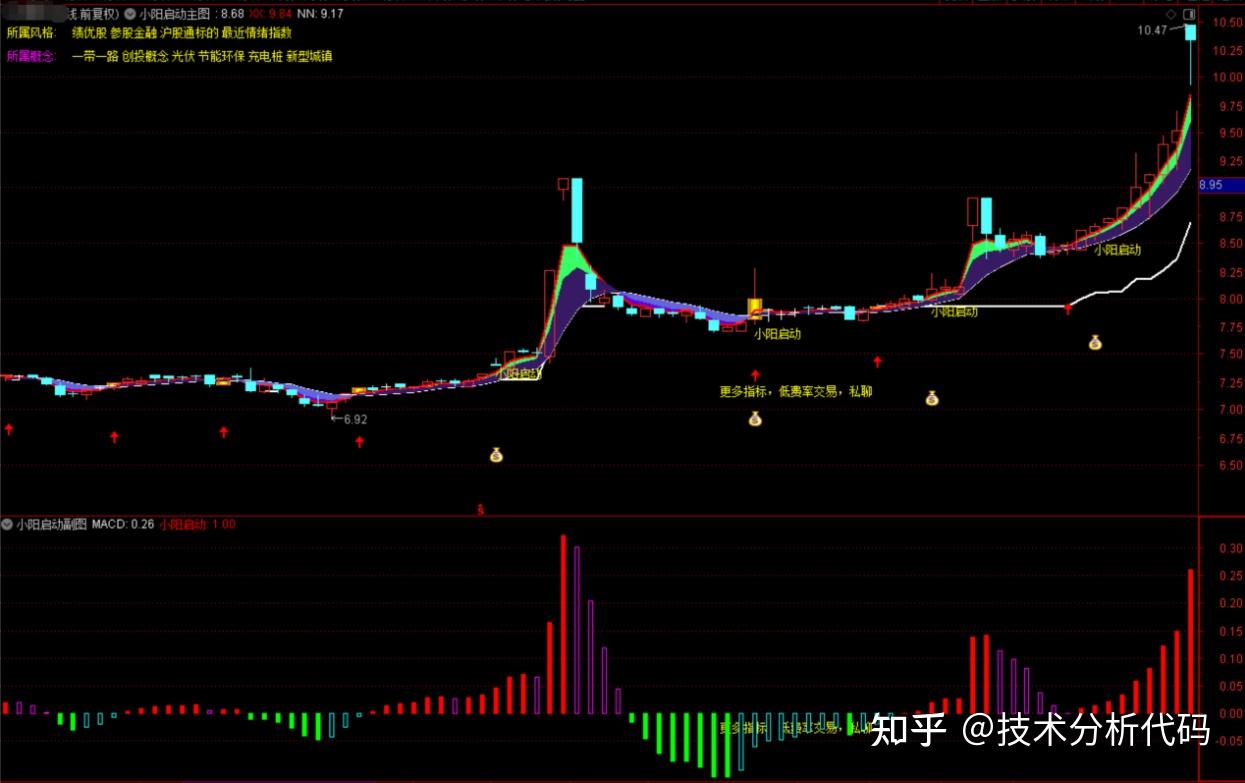 小阳启动:DIF>DEA AND MACD>REF(MACD,1),COLORRED,NODRAW;