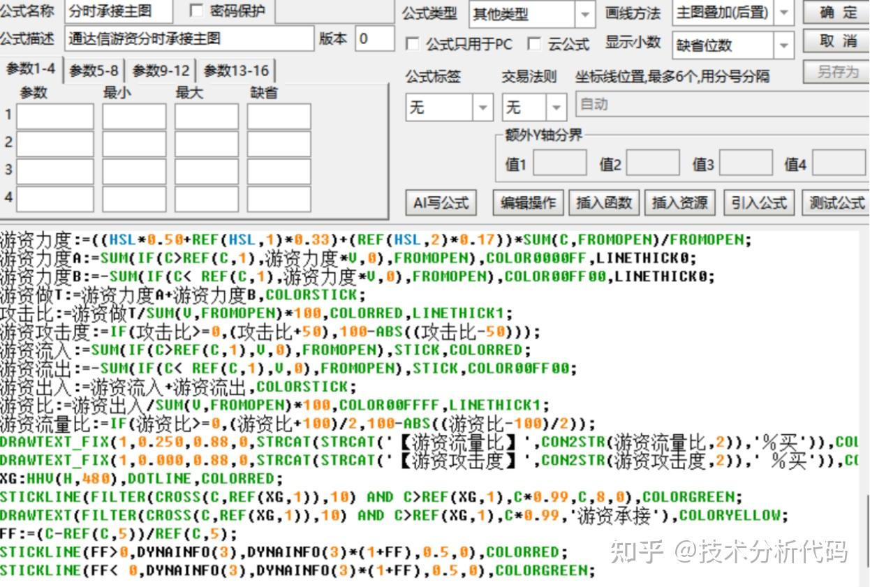 游资力度B:=-SUM(IF(C< REF(C,1),游资力度*V,0),FROMOPEN),COLOR00FF00,LINETHICK0;
