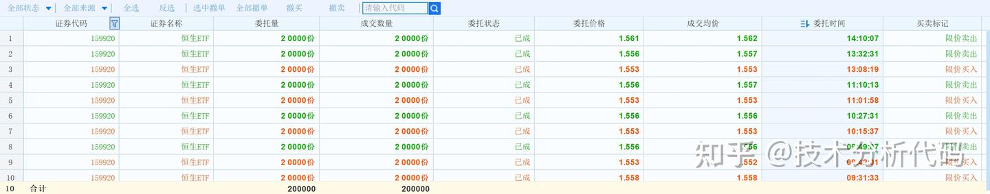 股票程序化交易系统股票量化交易港股通科技ETF自动委托明细:
