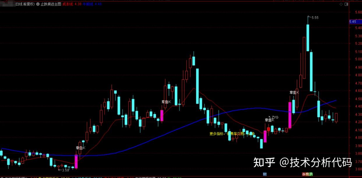 DRAWTEXT(章鱼K AND NOT(鱼哥K),1.01*H,'章鱼K'),COLORWHITE;