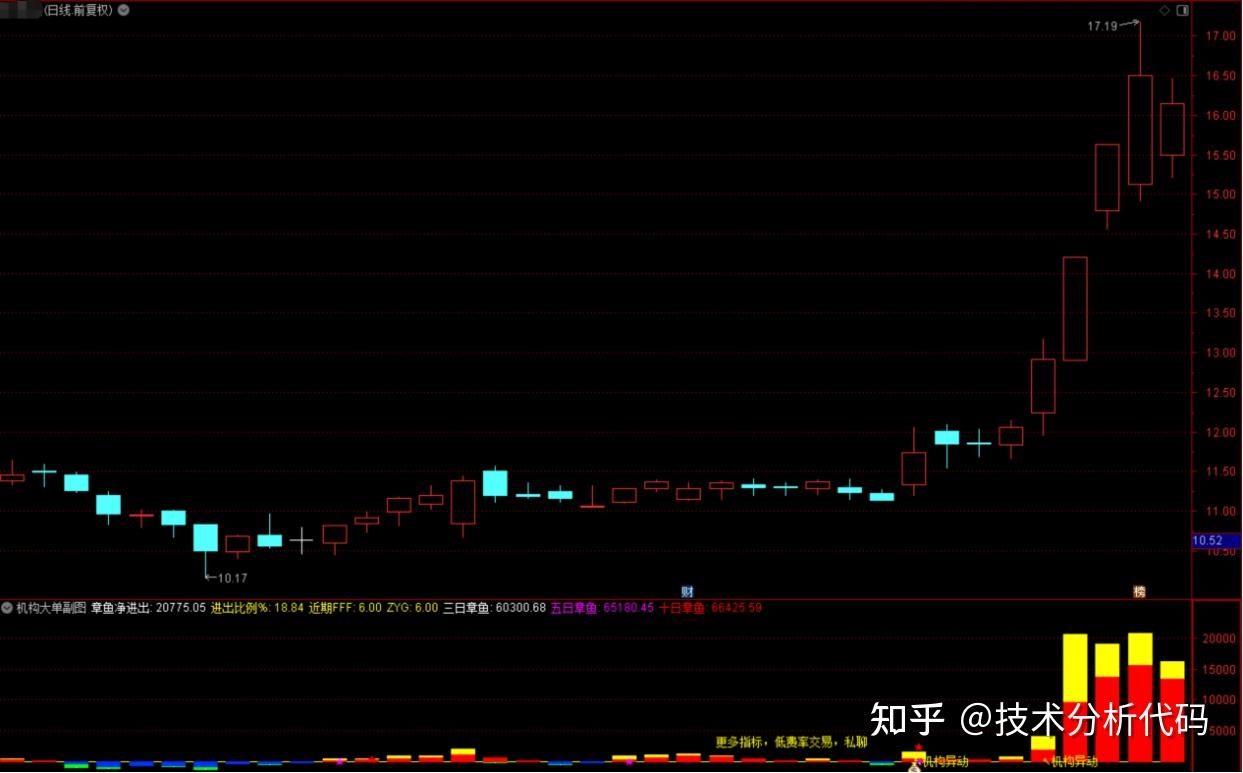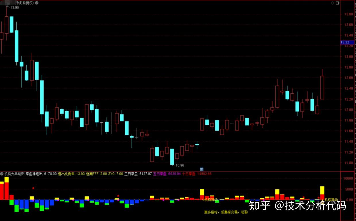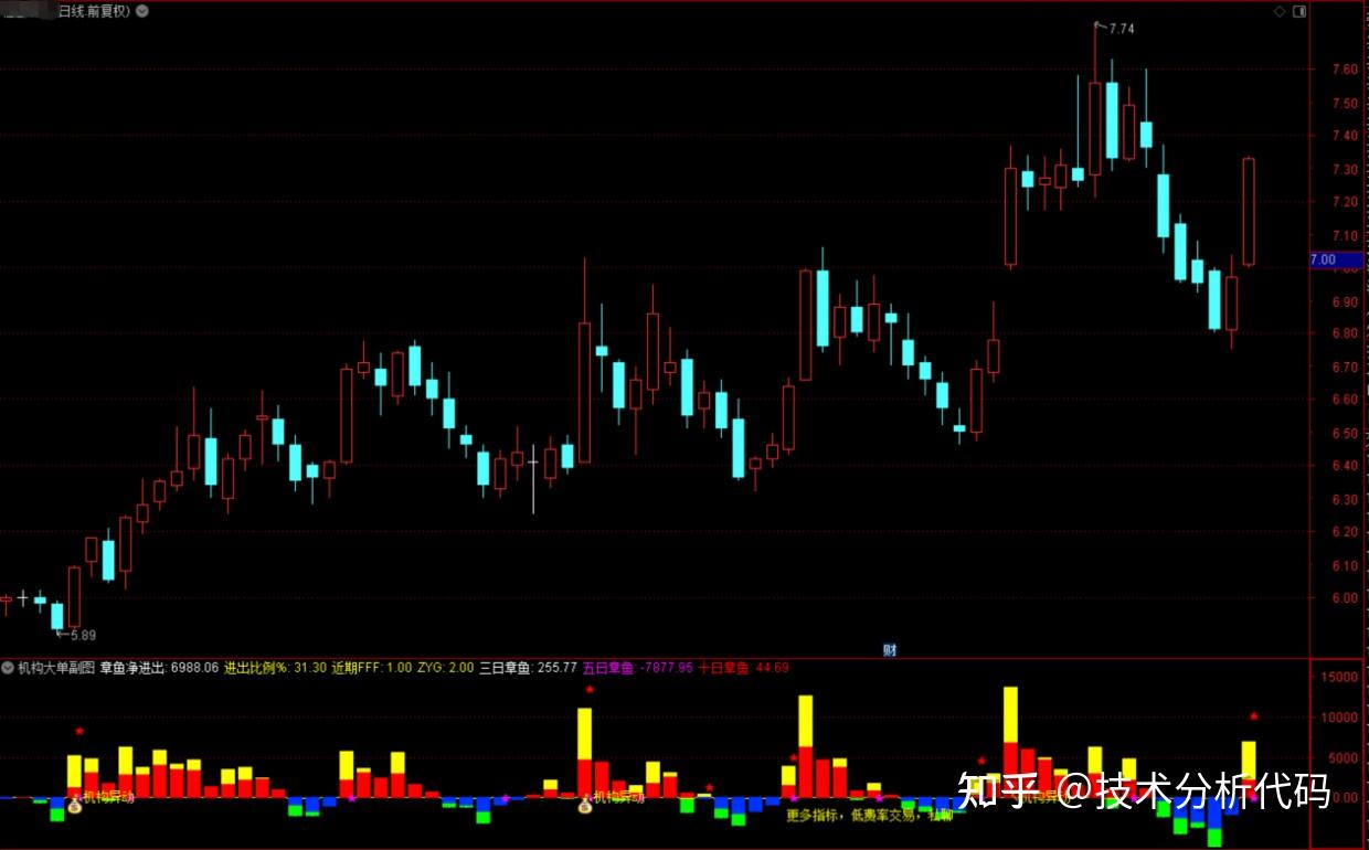 章鱼净进出:IF((ZTT*0.4+LLJX)>0,章鱼流入,章鱼流出),COLORWHITE,POINTDOT;