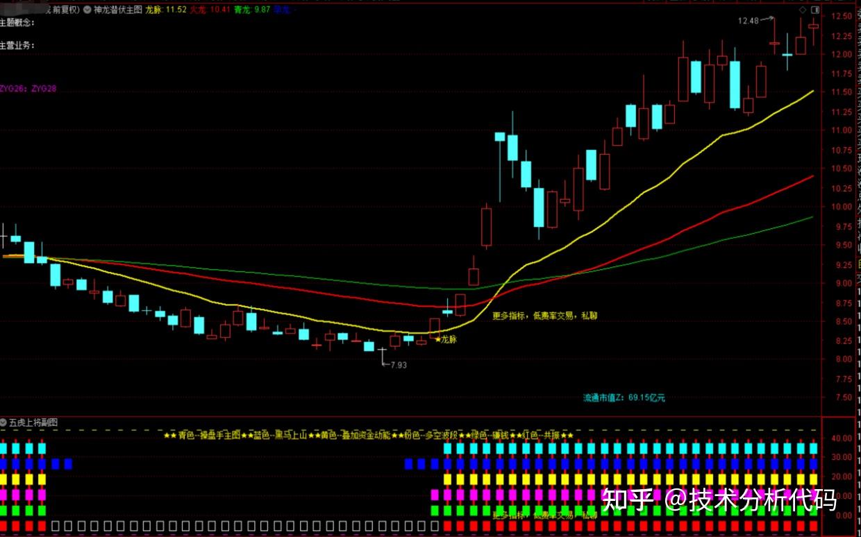 DRAWTEXT_FIX(1,0.2,0,0,'★★ 青色--操盘手主图★★蓝色--黑马上山★★黄色--叠加资金动能★★粉色--多空波段