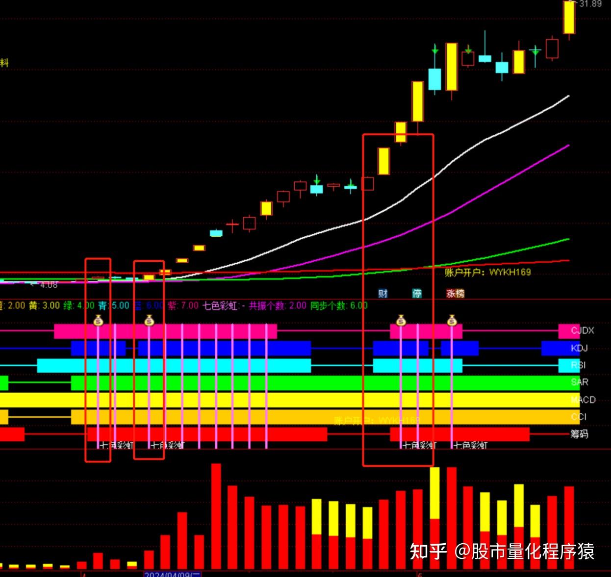 七色彩虹七大金叉共振选股指标公式代码解读: