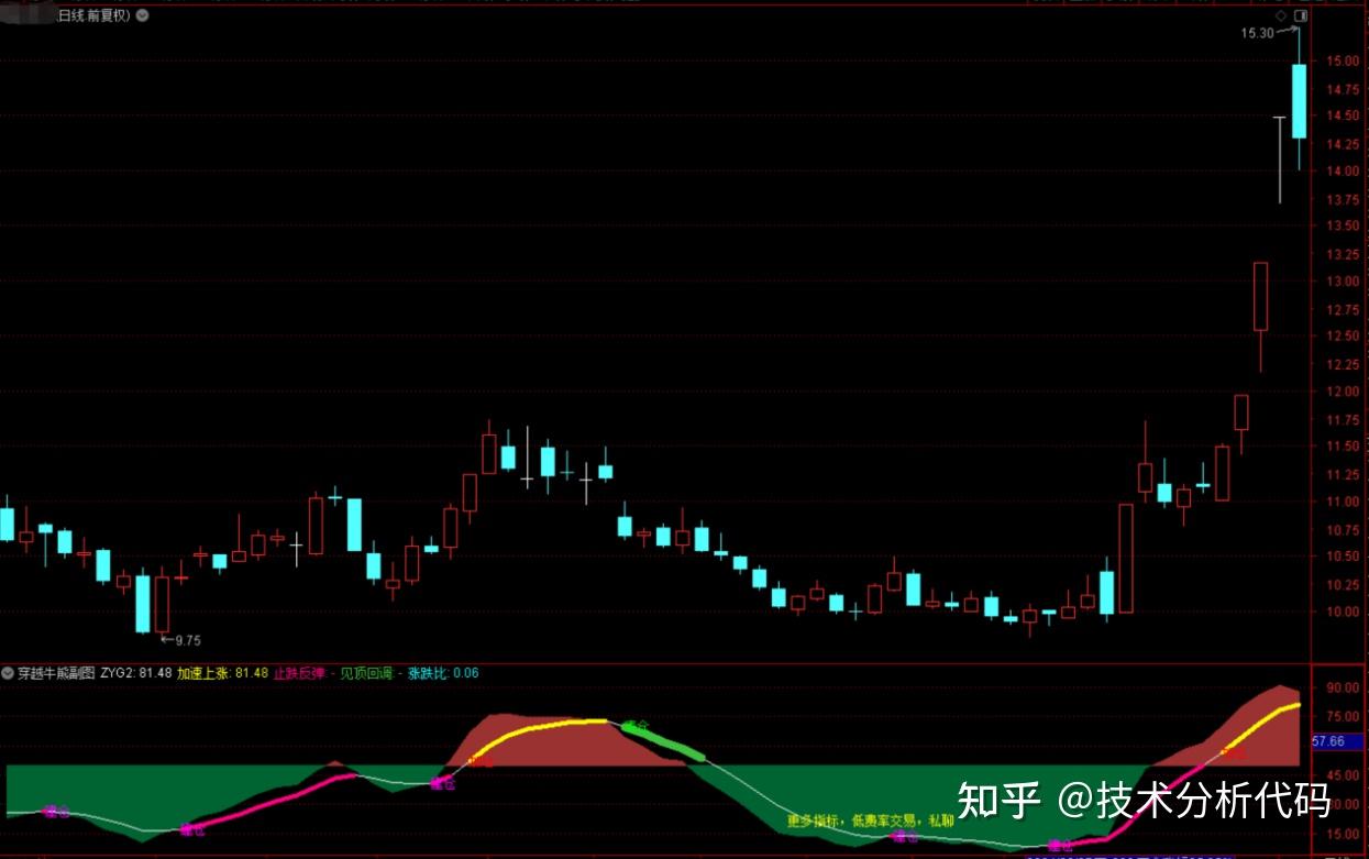 上涨趋势:=IF(ZYG1>50,ZYG1,DRAWNULL),COLORRED;