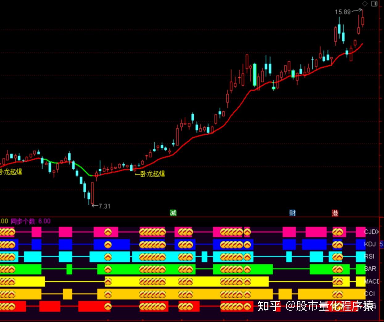 卧龙七彩抓金叉共振波段主升浪主图指标代码