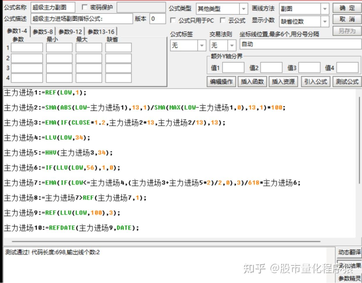 主力进场2:=SMA(ABS(LOW-主力进场1),13,1)/SMA(MAX(LOW-主力进场1,0),13,1)*100;