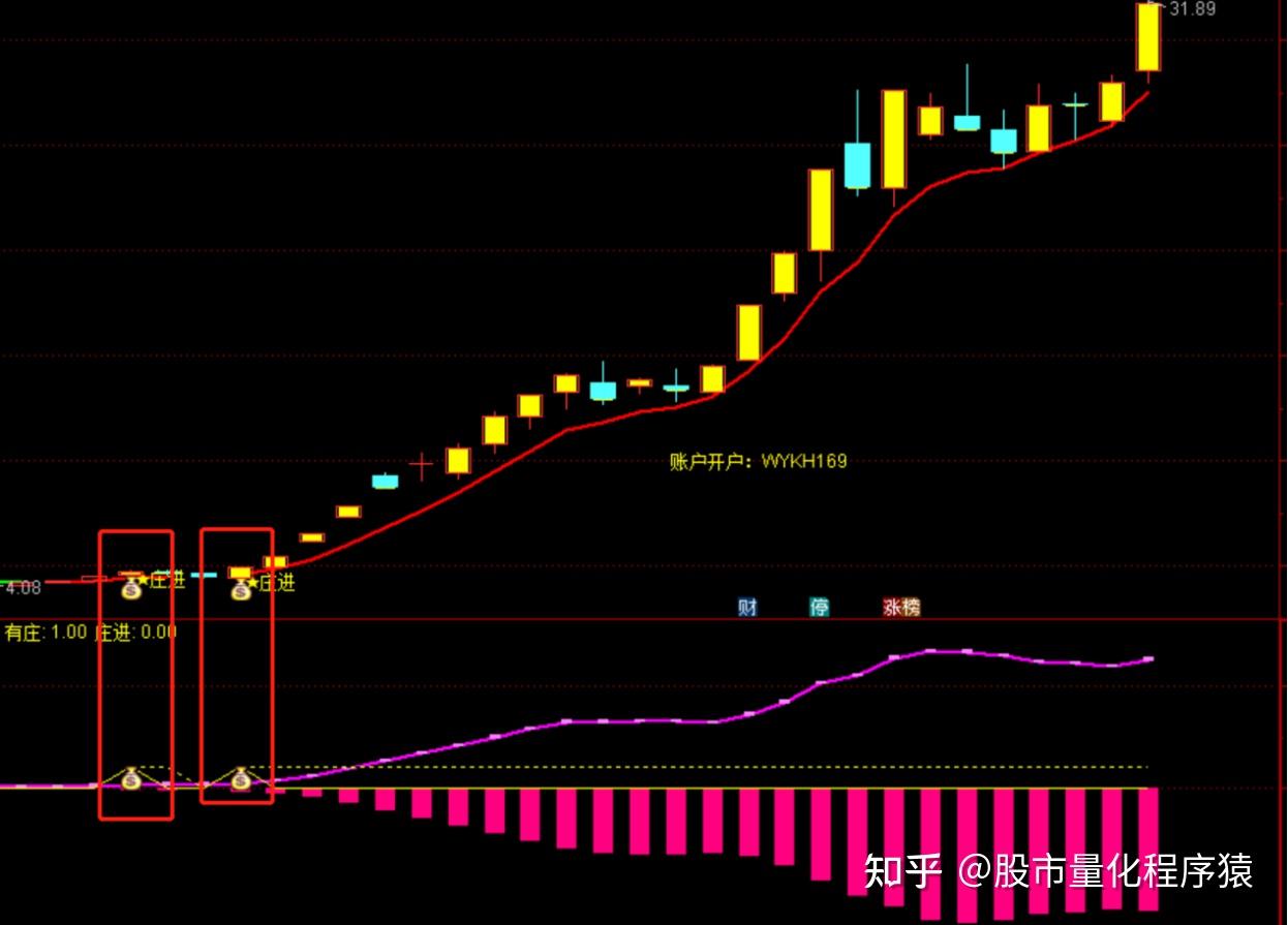 1、副图红色柱子,表示“主力进场”,显示“钱袋子”信号;