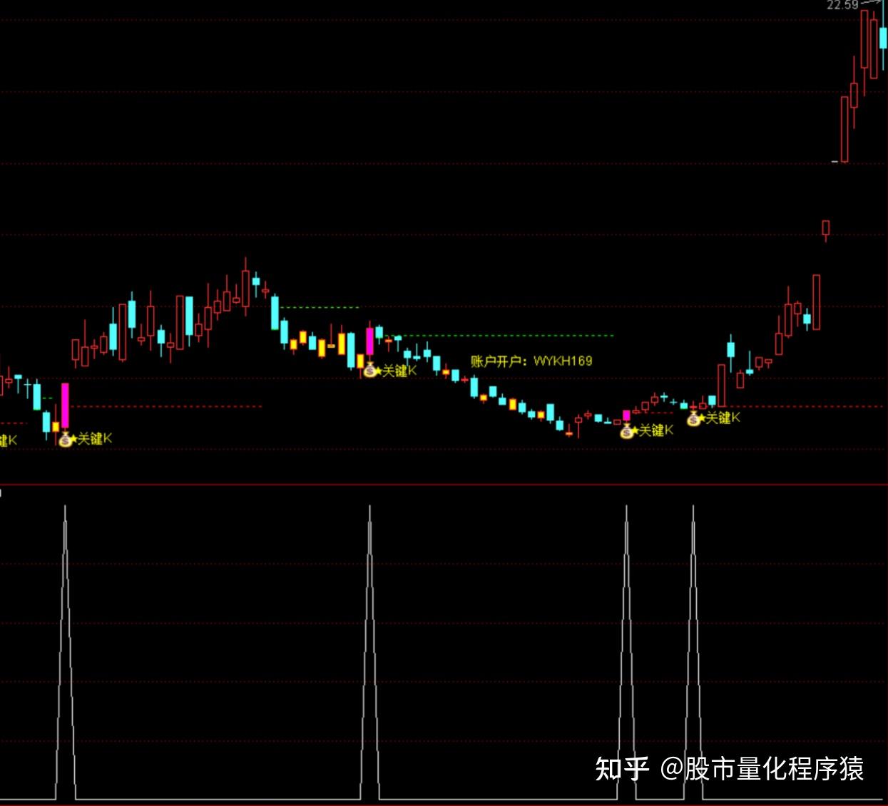 关键K线4:=IF(关键K线2/REF(关键K线2,1)>1.001,关键K线2,DRAWNULL),COLORRED,LINETHICK2;