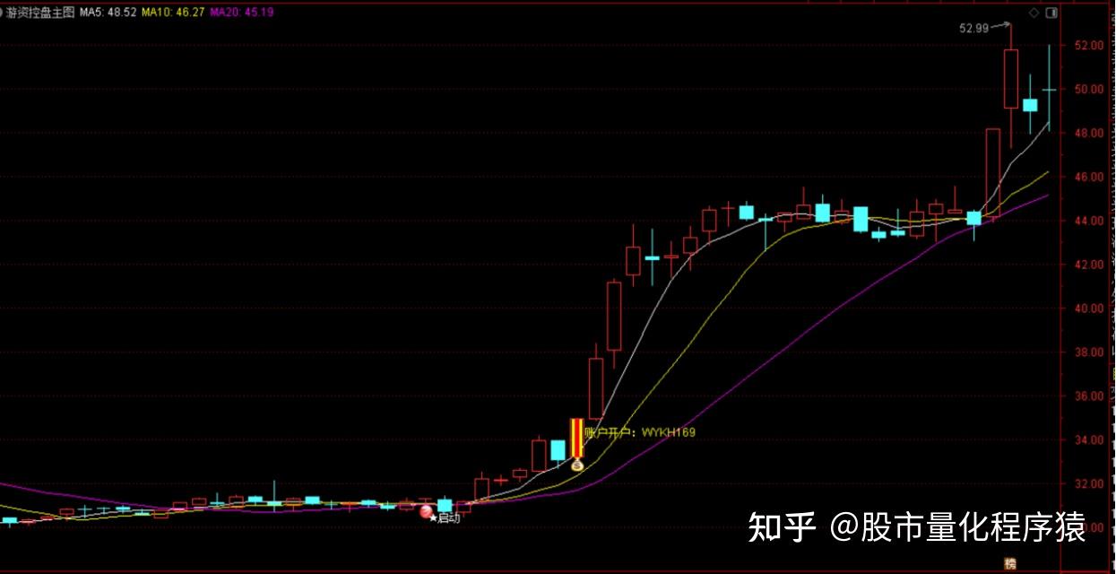 游资异动1赋值:(收盘价的3日简单移动平均+收盘价的6日简单移动平均+收盘价的12日简单移动平均+收盘价的24日简单移动平均)/4