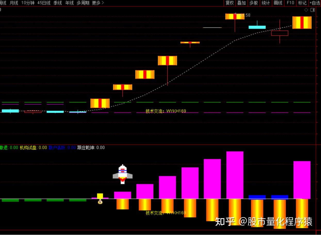 机构火箭量化跟庄指标,是一个用于技术分析的股票指标,它旨在提前识别市场中的庄家和散户活动,以及机构的实盘操作和洗盘行为。