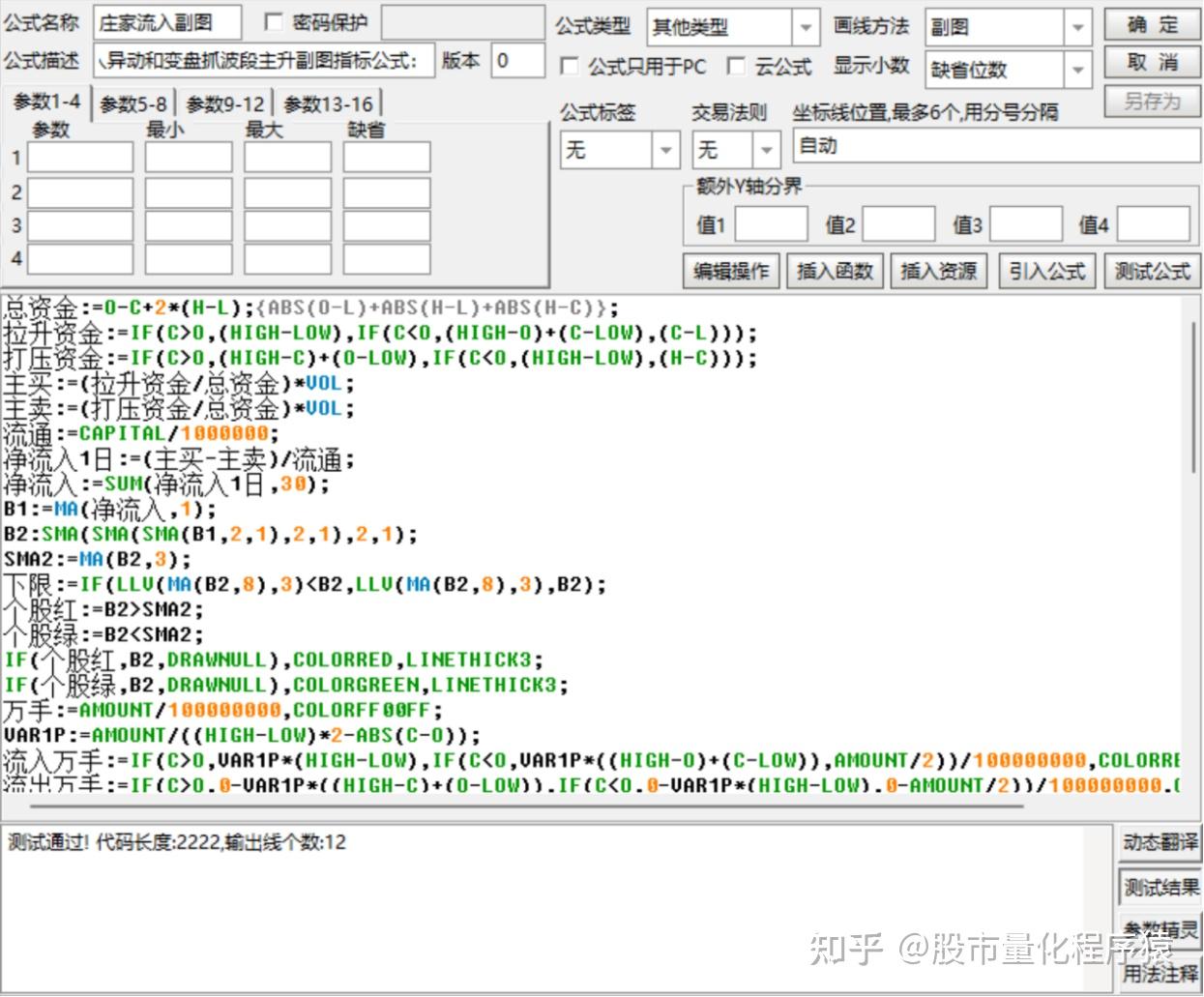 流出万手:=IF(C>O,0-VAR1P*((HIGH-C)+(O-LOW)),IF(C<O,0-VAR1P*(HIGH-LOW),0-AMOUNT/2))/100000000,COLOR00FF00;