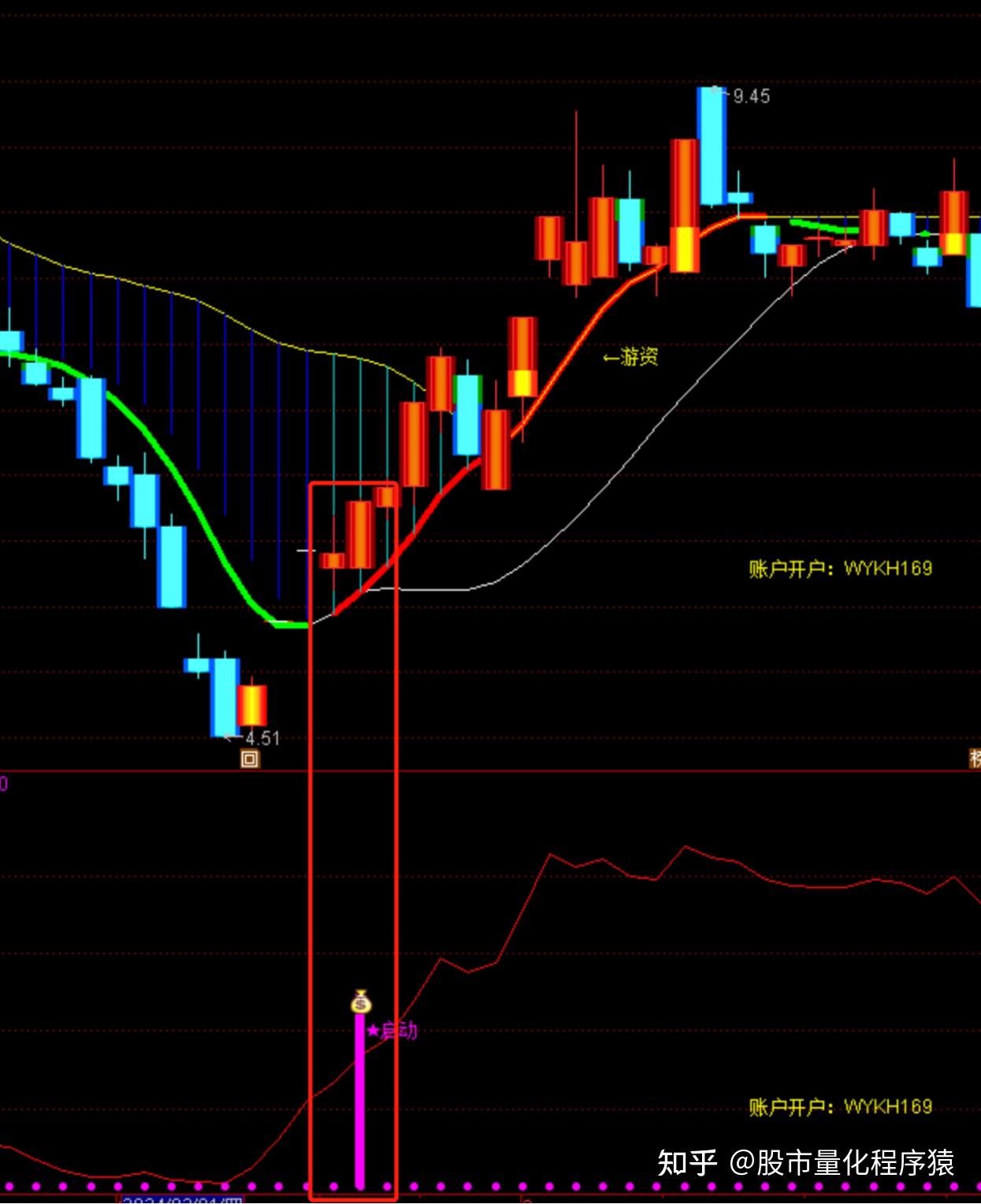 共振启动:是一个用来捕捉个股主升启动前的信号,且每一个信号均在多头趋势下出现。“钱袋子”为启动信号。