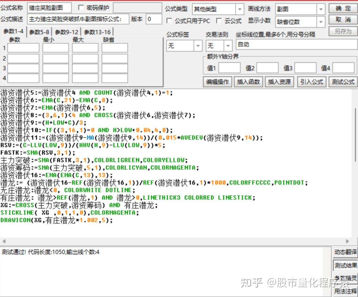 游资潜龙1:=(HHV(H,N)-C)/(HHV(H,N)-LLV(LOW,N))*100- M;