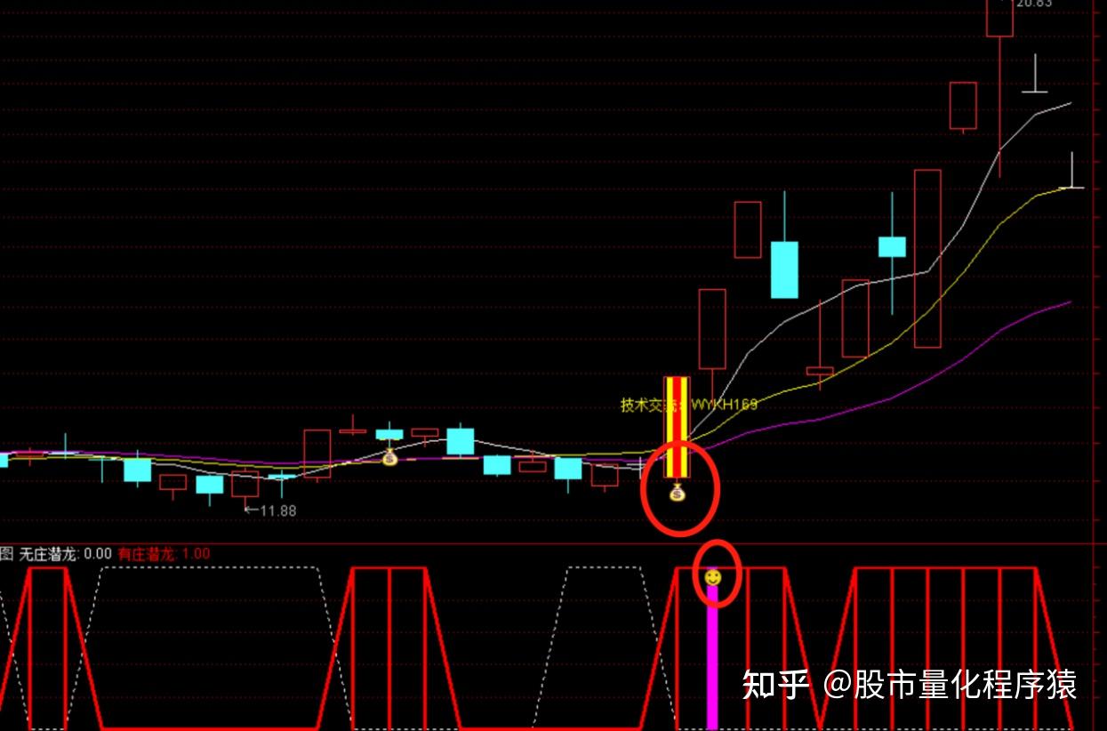 3、副图中“笑脸”是金叉+有庄控盘同时出现的信号;