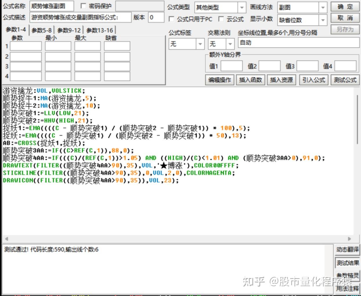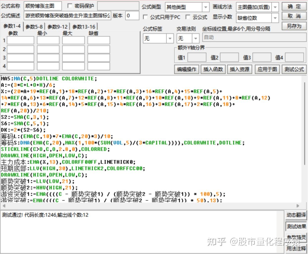 游资突破:=EMA((((C - 顺势突破1) / (顺势突破2 - 顺势突破1)) * 50),13);