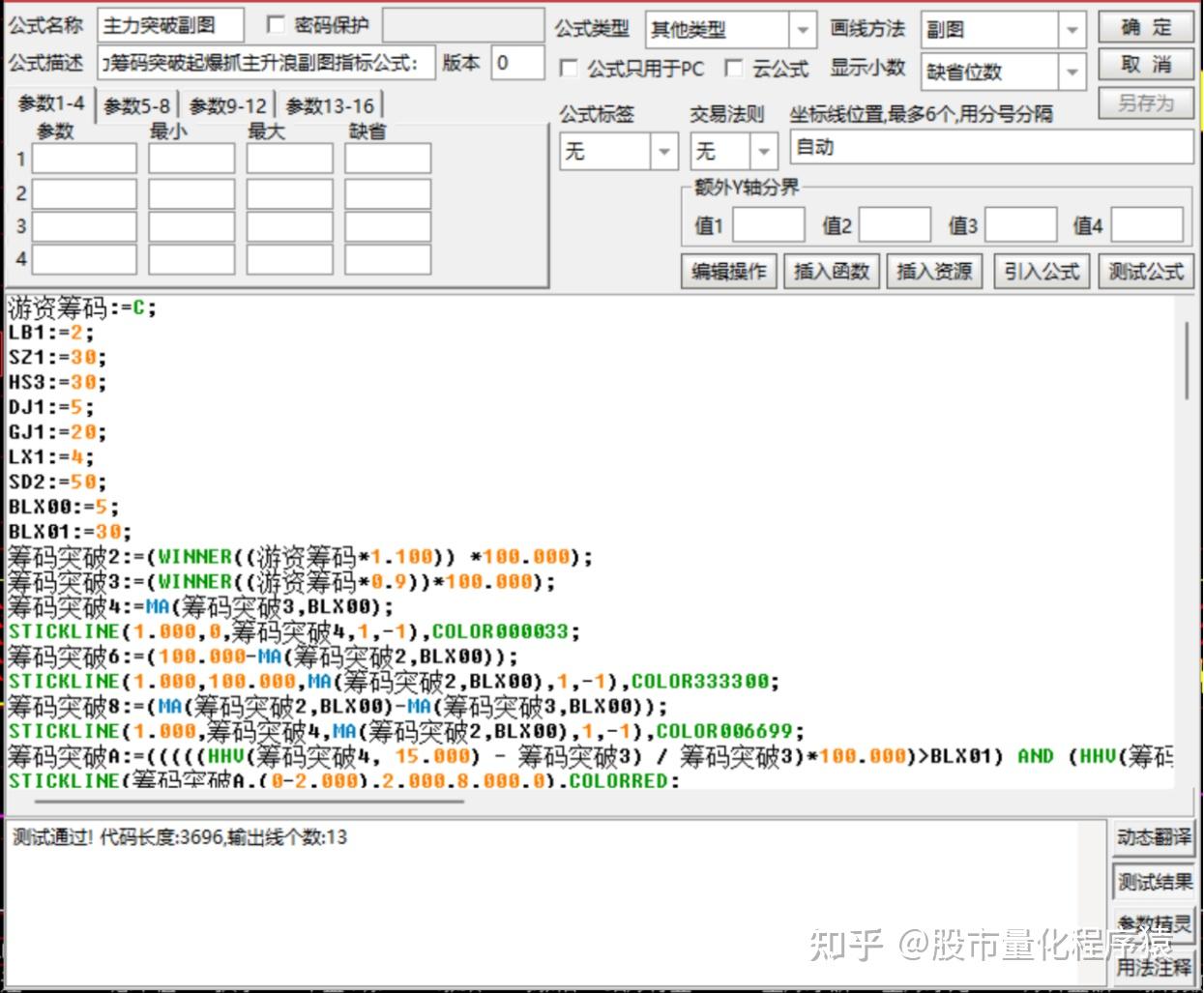 主力筹码3:=SMA(ABS(LOW-主力筹码2),13,1)/SMA(MAX(LOW-主力筹码2,0),13,1)*100;