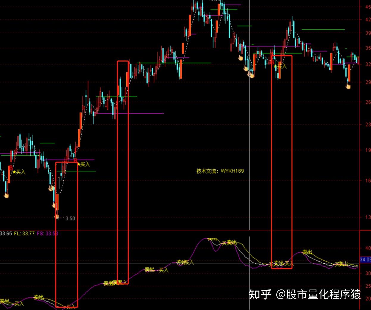 DRAWTEXT(FL=FS AND REF(FL,1)>REF(FS,1) ,FS,'买入'),COLORYELLOW ;