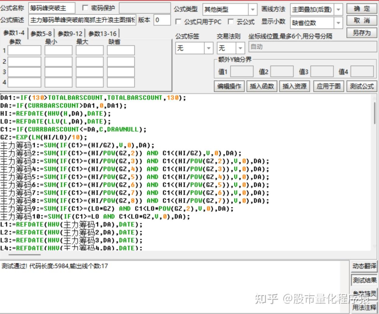 主力筹码2:=SUM(IF(C1>=(HI/POW(GZ,2)) AND C1<(HI/GZ),V,0),DA);