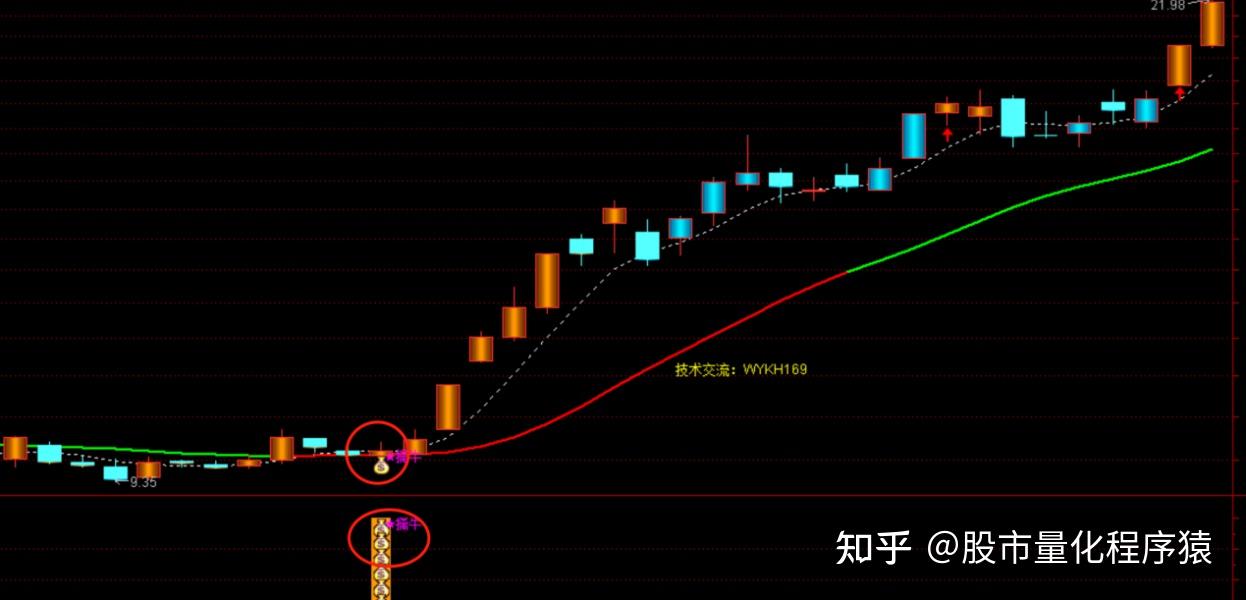 IF(金牛突破2>=金牛突破3,捉妖,DRAWNULL),COLORRED,LINETHICK2;
