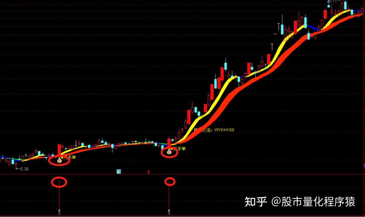 2、出信号后建议在“红黄色带”运行上方K现持有,线下休息;