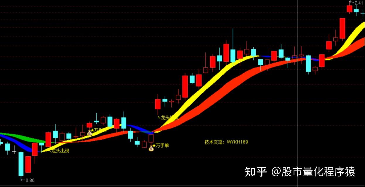 4、结合热点题材、显示“龙头出现”时,可重点关注,此信号可选股;