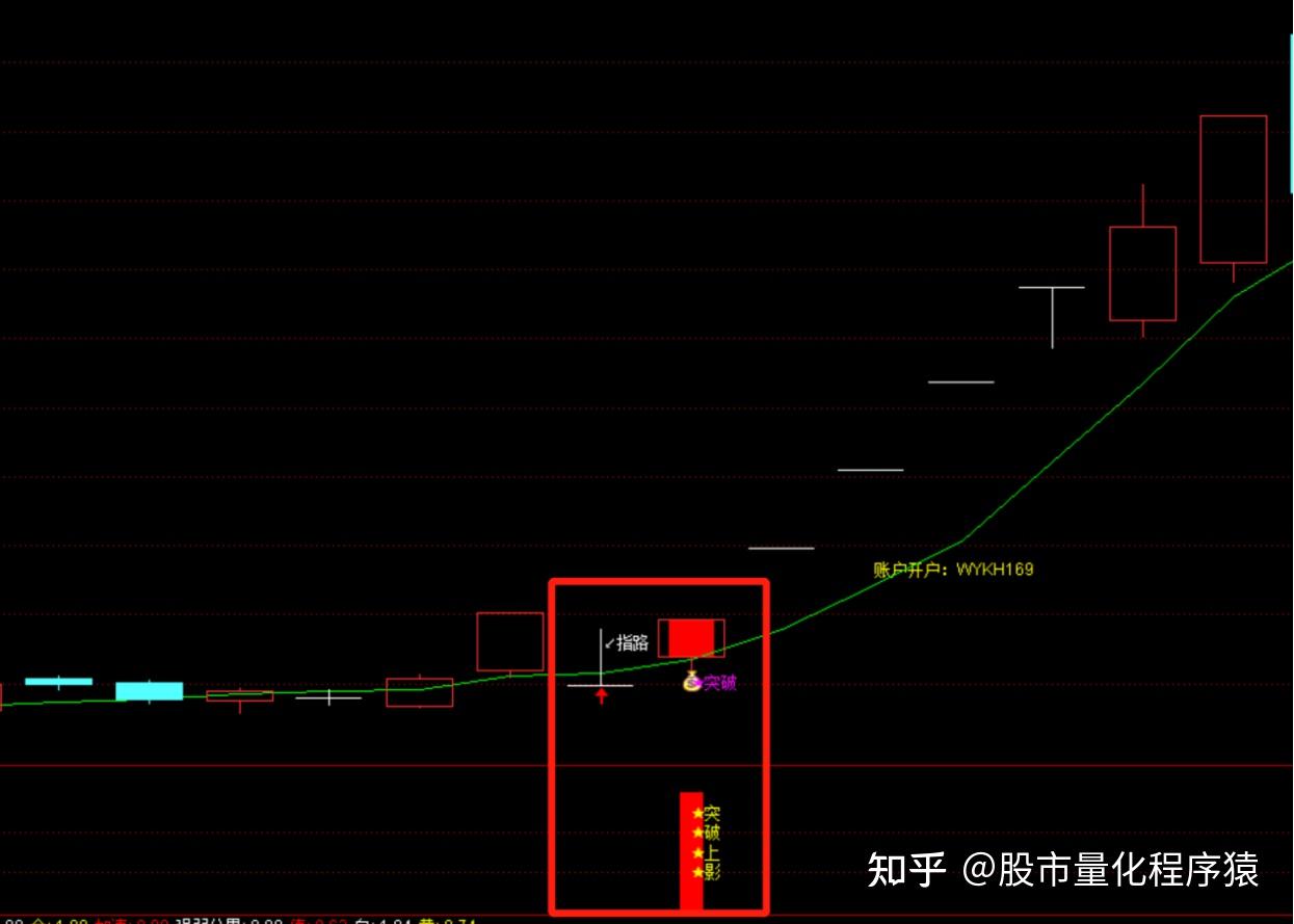 仙人指路突破上影指标:这里使用的是突破前一天红箭头“指路上影线”,第二天突破后出现“钱袋子”的买入信号。不是所有的上影线的第二天都会出现信号,一定是“先指路,后突破”。