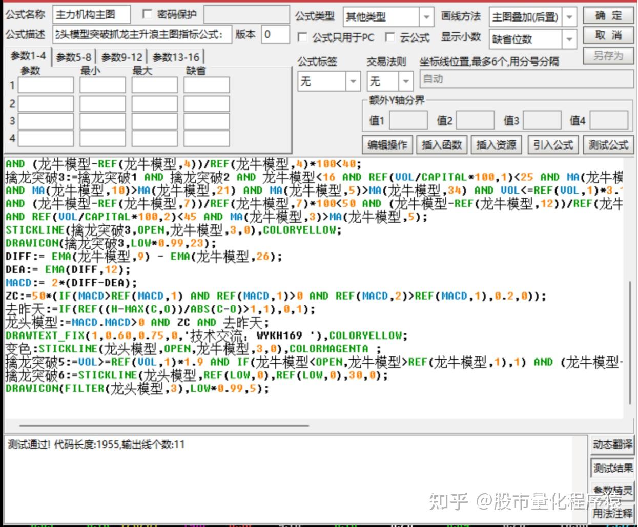 主力机构龙头模型突破抓龙主升浪主图指标公式: