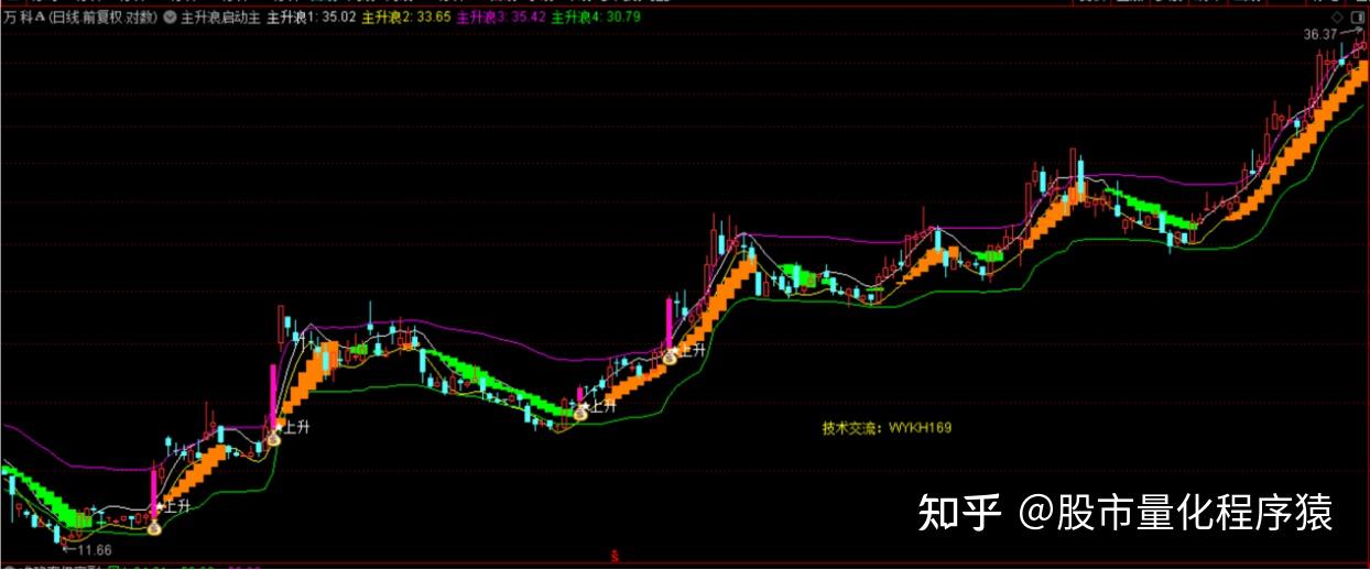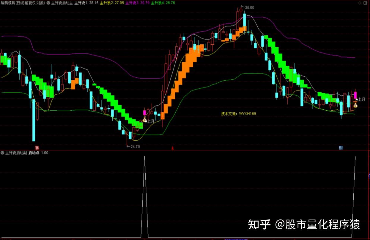 主升浪启动点之通道突破抓主升浪主图指标公式: