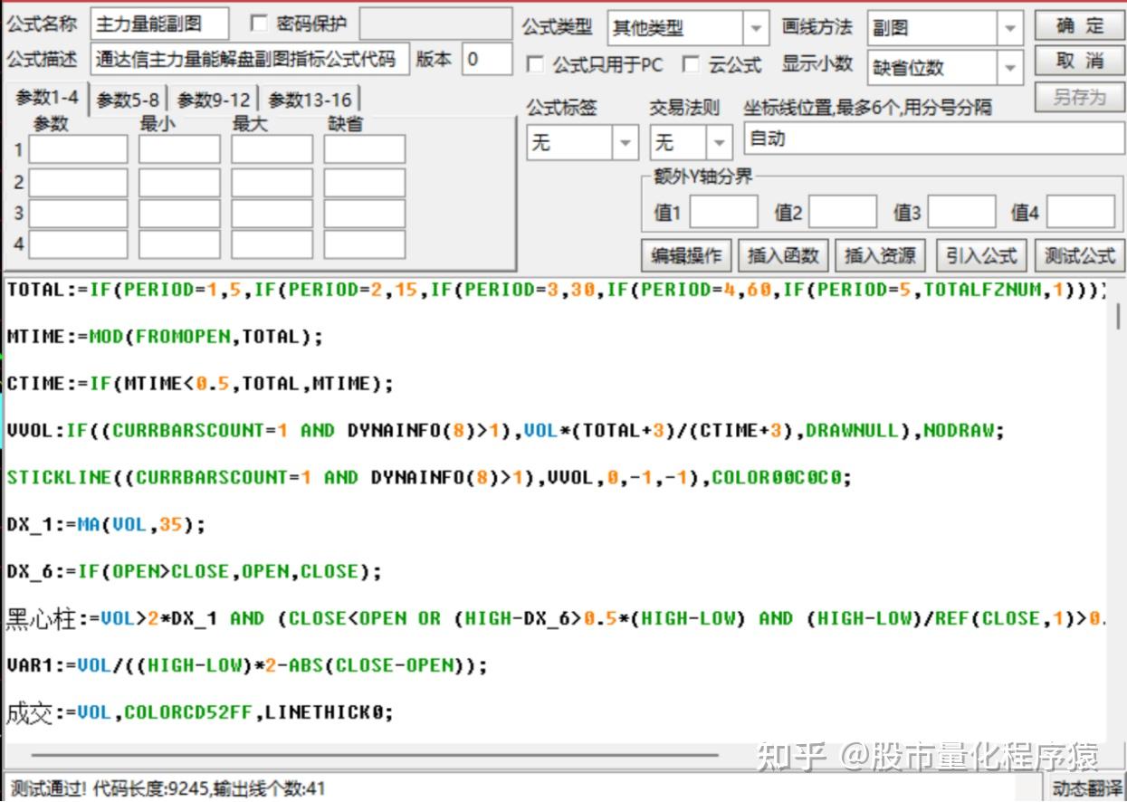 卖盘:=IF((CLOSE > OPEN),(0 - (DVAR1 * ((HIGH - CLOSE) + (OPEN - LOW)))),IF((CLOSE < OPEN),(0 - (DVAR1 * (HIGH - LOW))),(0 - (VOL / 2))));