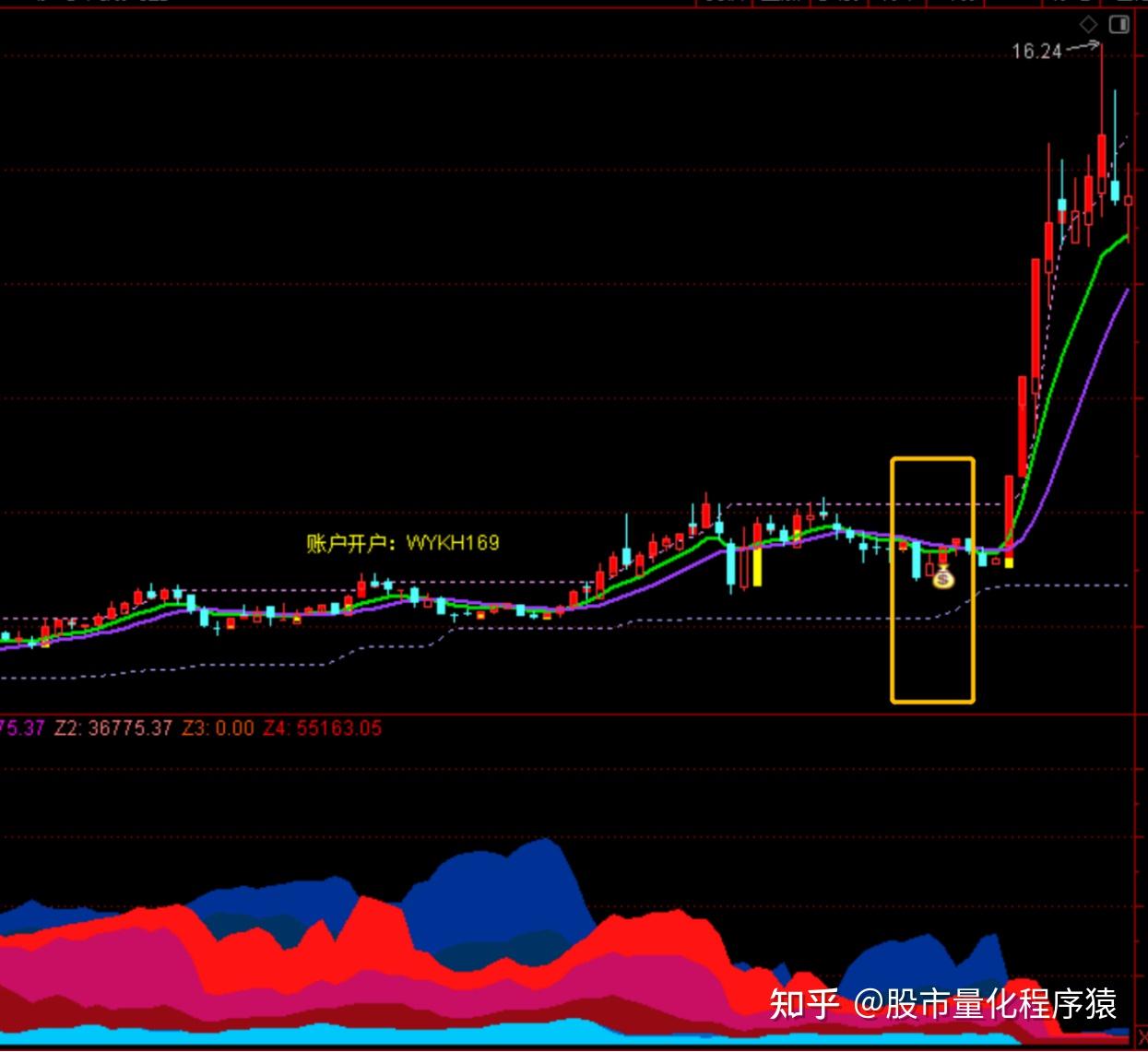 拉升牛1:=EMA(LOW,2);DRAWTEXT_FIX(1,0.60,0.75,0,'账户开户:WYKH169 '),COLORYELLOW;
