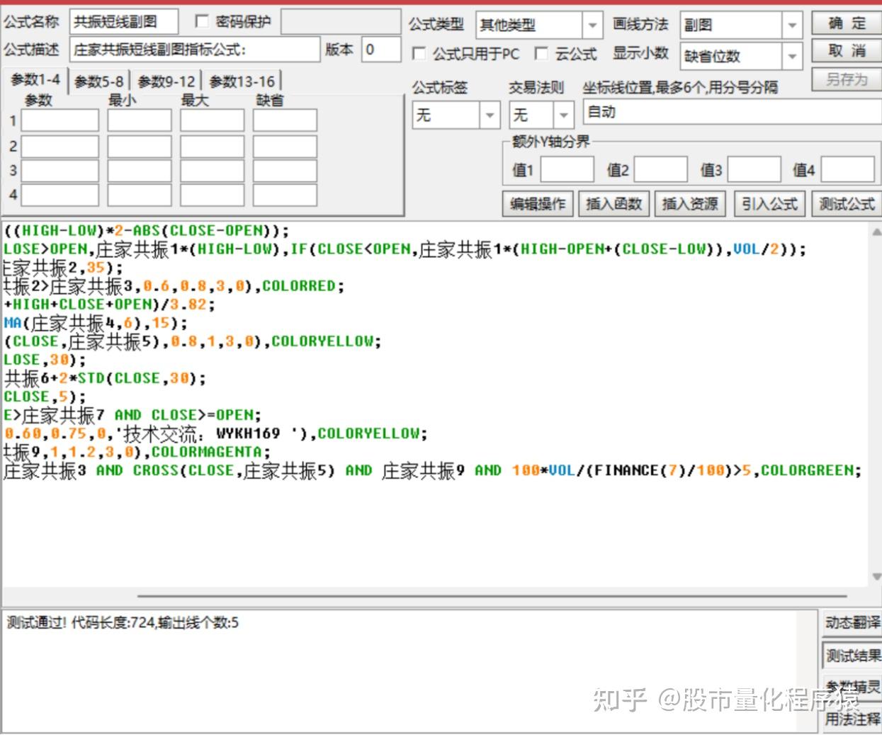 庄家共振短线副图指标公式:
