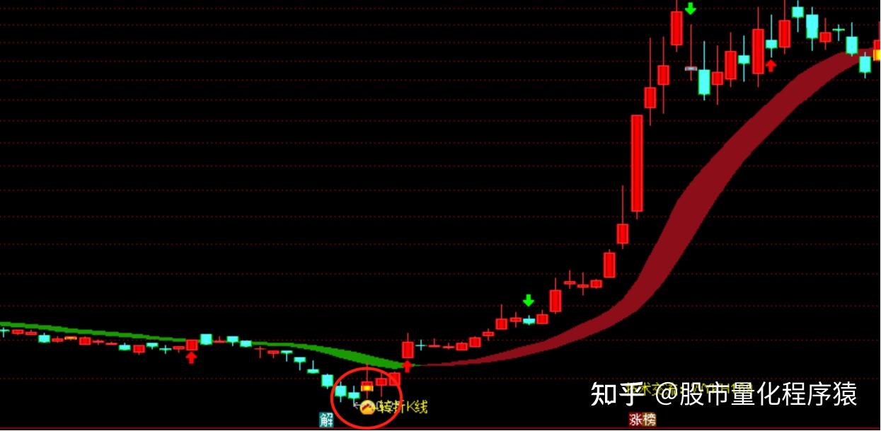 转折K线指标,在前期主力经过了一轮进货、洗盘动作后,已经完成了筹码的收集,发出信号,显示了比较清晰的底部转折K线信号,这个长阳线就是我们所说的转折K线,此时的转折K线组合表示主力已经探明了底部并发出了止跌回升的信号这就是我们最好的买点。