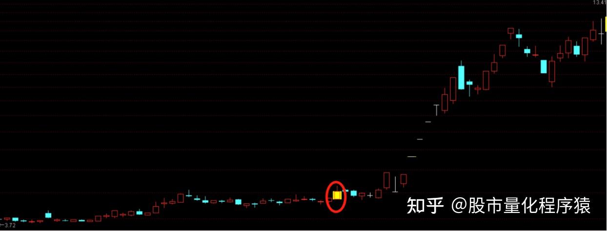 STICKLINE(BARSLASTCOUNT(C>=月高延伸 AND MA(C,20)>MA(C,60) AND C/REF(C,1)>1.03)=1 AND C>REF(HHV(H,10),1) ,O,C,4,0),COLORYELLOW;