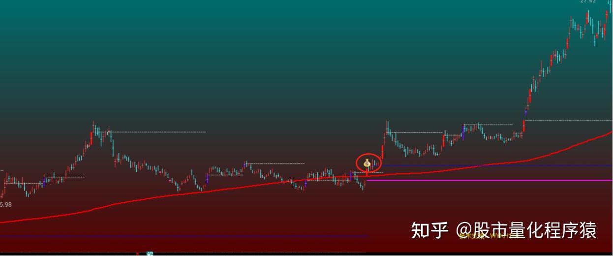 STICKLINE(V/REF(V,1)>=2.9 AND C>=O AND TOPRANGE(V)>=20,O,C,(-1),0)COLORMAGENTA;