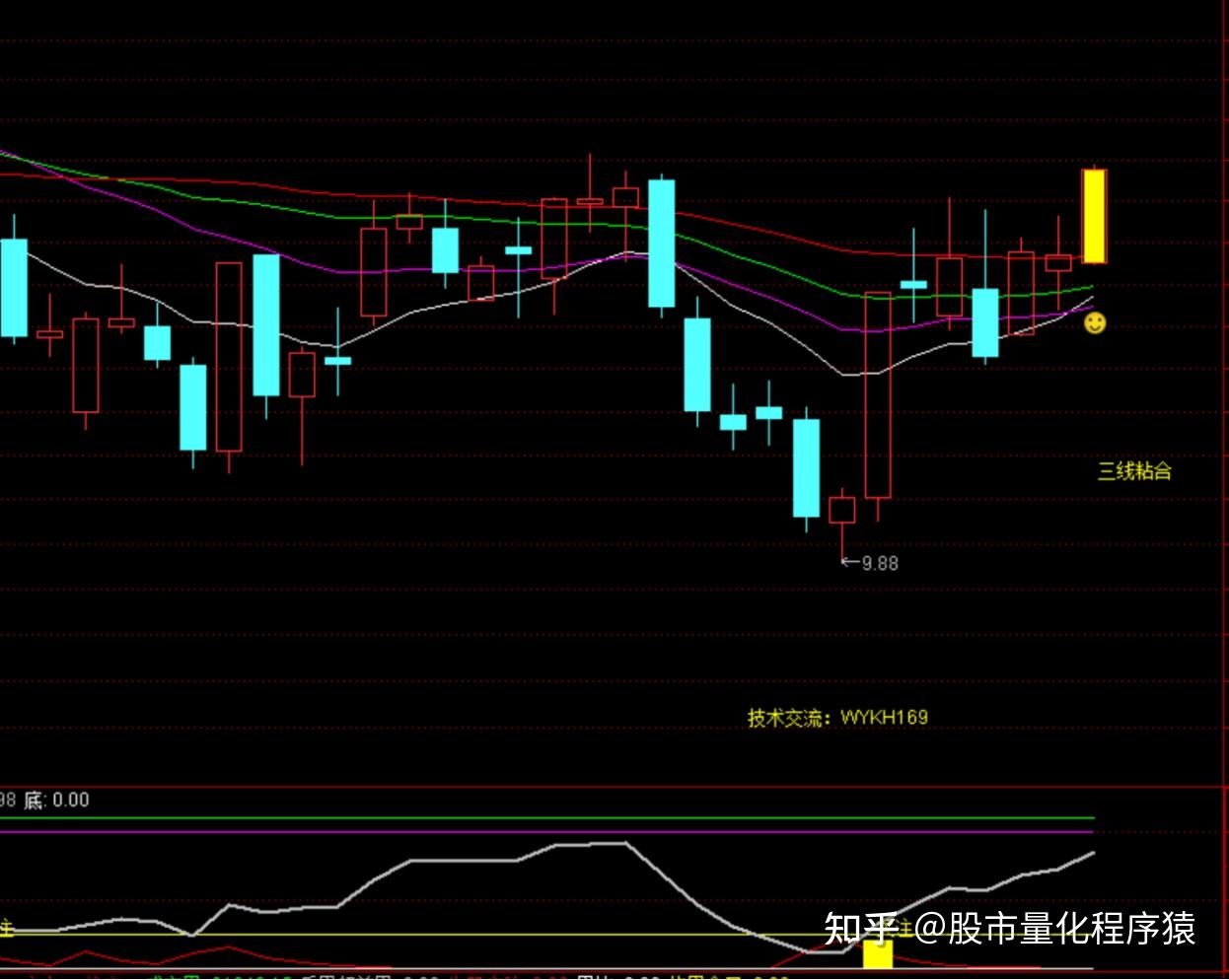 三线粘合:=FILTER(美丽心情4>REF(美丽心情4,2)AND REF(美丽心情2,3) AND(美丽心情20-美丽心情10)/美丽心情10<0.005,5) AND MA(C,28)>REF(MA(C,28),1);