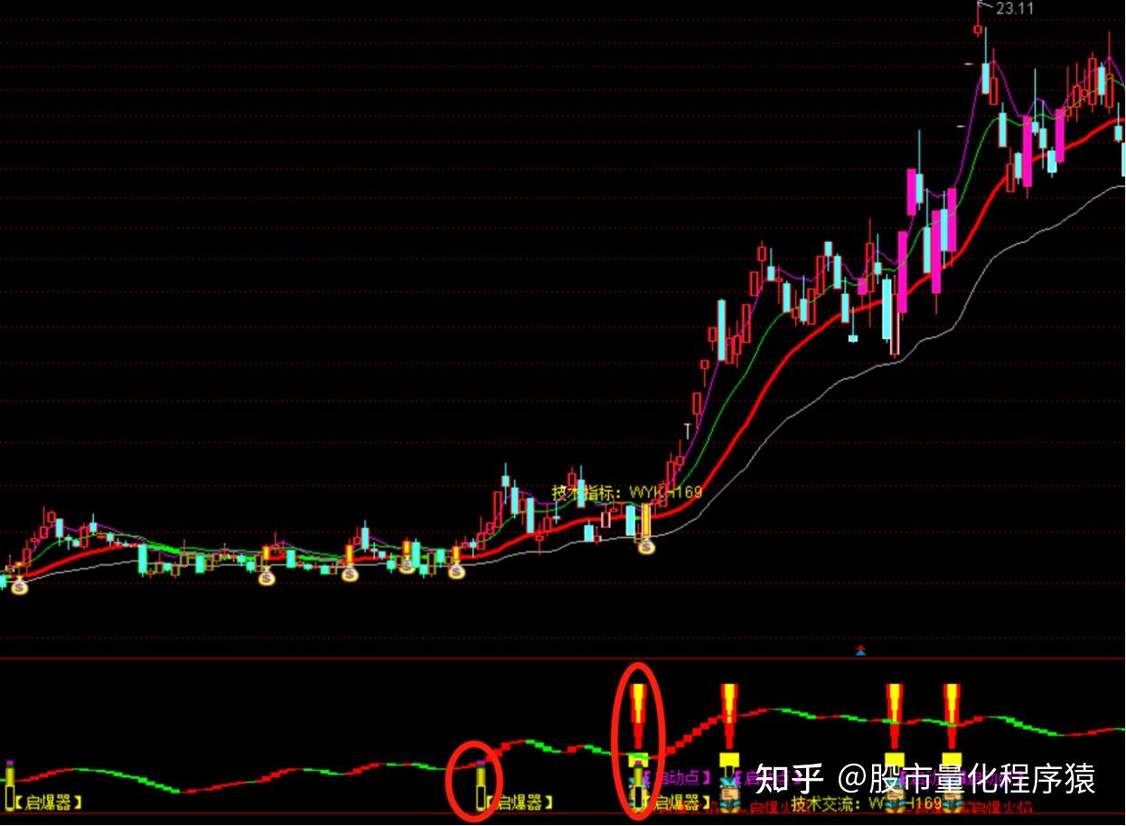 起爆点:=XG1>REF(XG1,1)COLORRED,LINETHICK2;