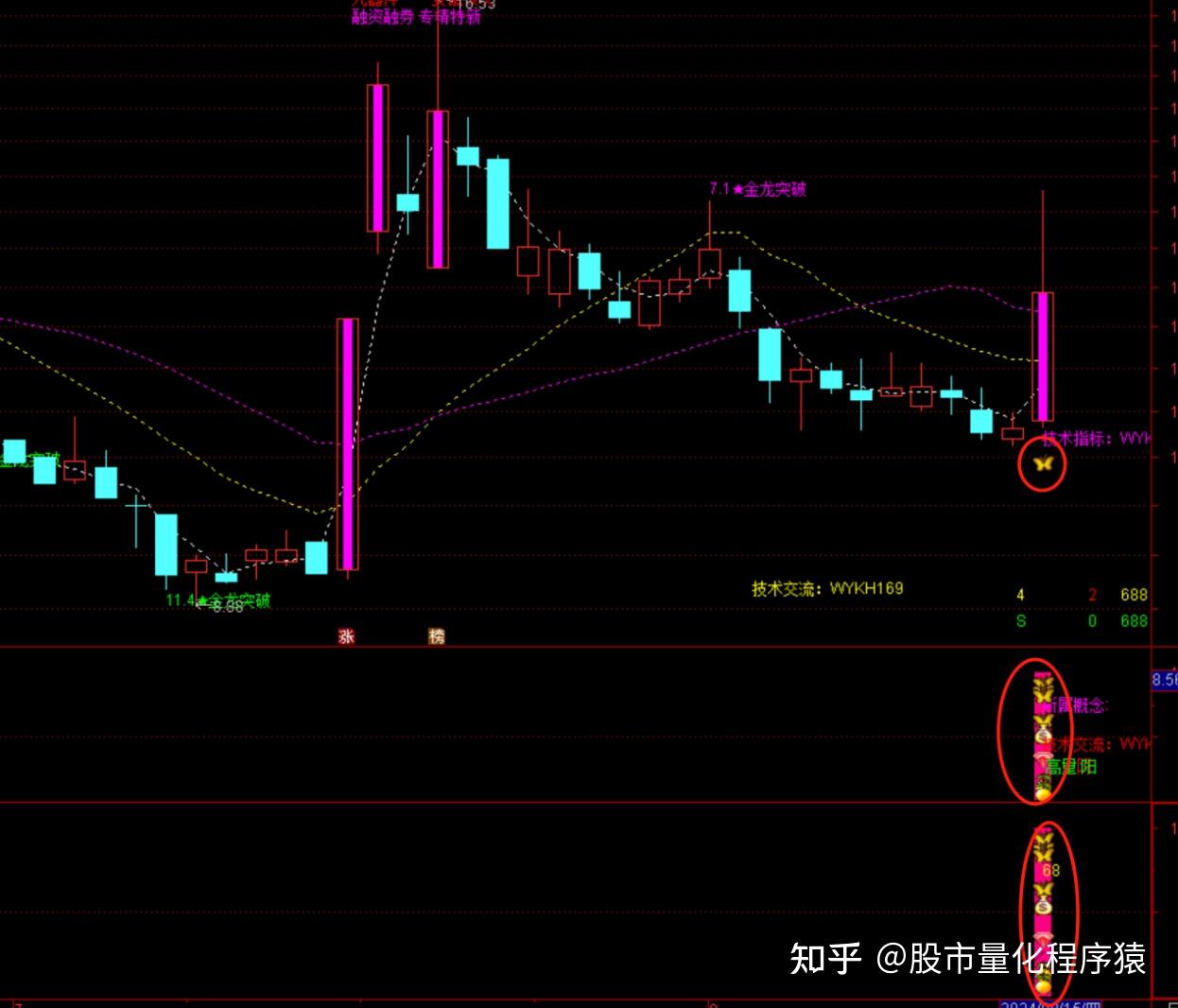 A21:MA(CLOSE,21),DOTLINE;DRAWTEXT_FIX(1,0.75,0.92,0,'技术交流:WYKH169 '),COLORYELLOW;