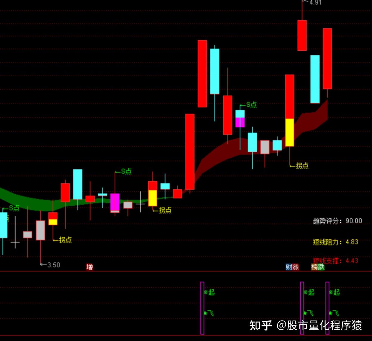 起飞:=CROSS(C,上箱顶) AND CROSS(C,起飞加速线)AND C>REF(C,1)*1.05;