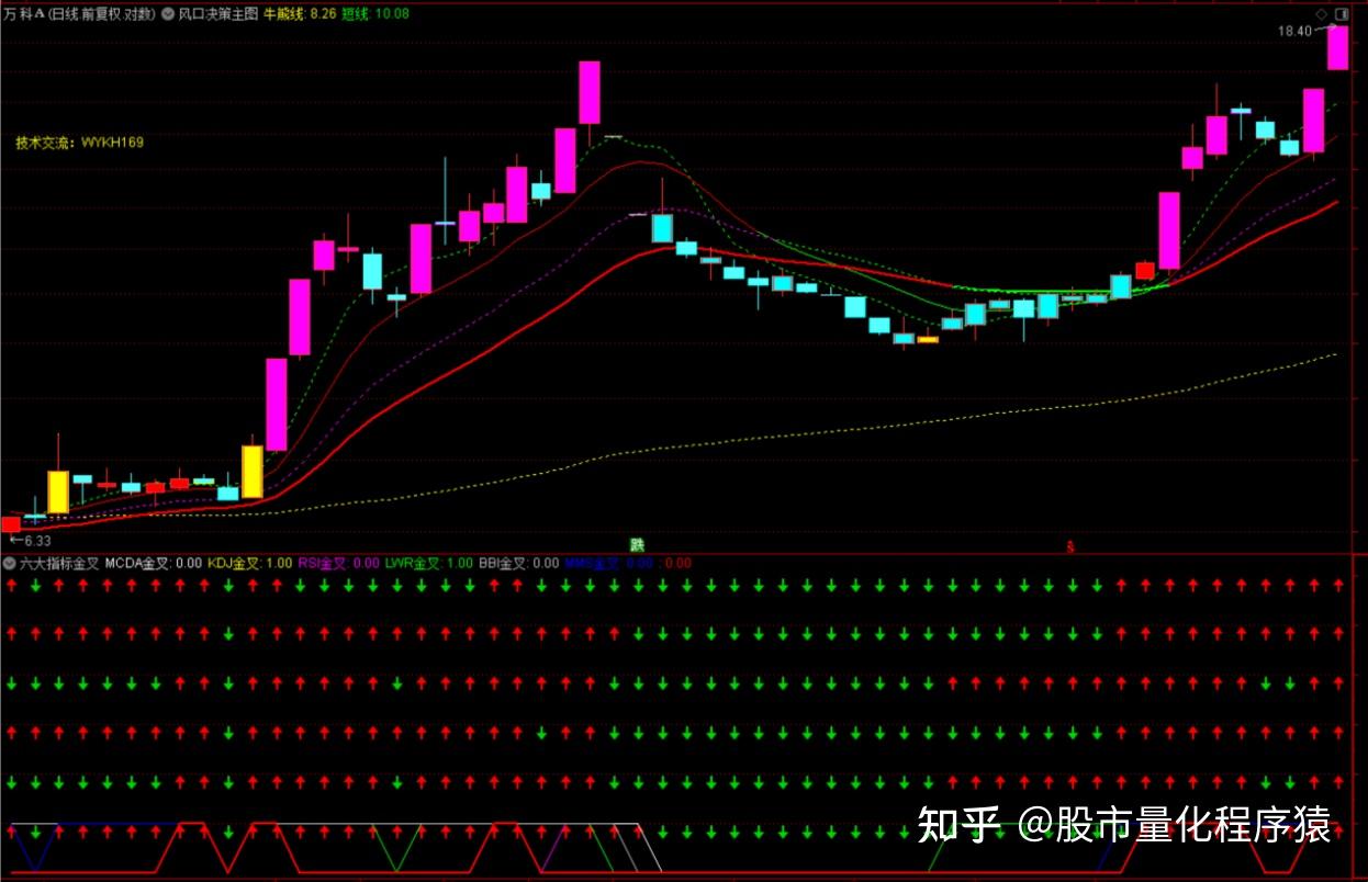 MACD/KDJ/RSI/MMS/BBI/LWR这6大指标同时金叉得指标副图,6大指标金叉代表短期内有资金净流入,短期可能进入主升浪,一般位置越低成功率就更高一些。