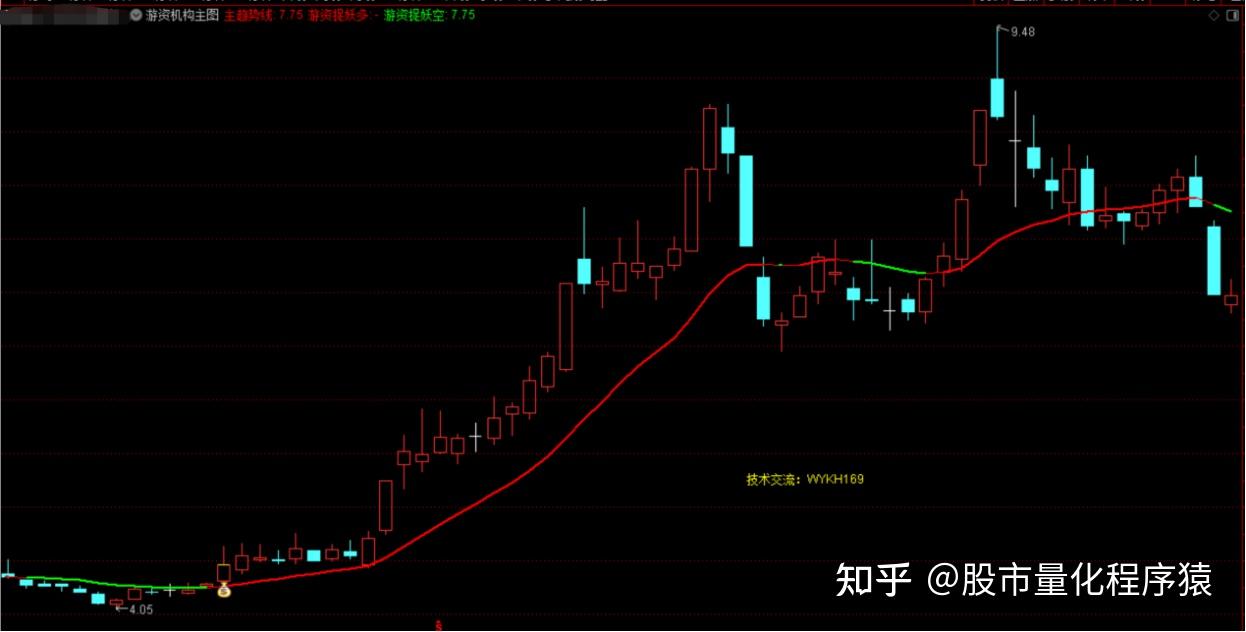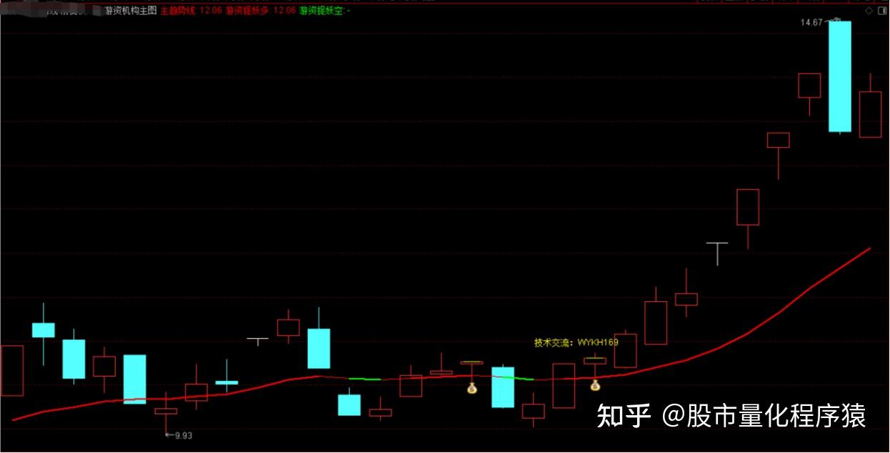 游资捉妖多:IF(主趋势线>=REF(主趋势线,1),主趋势线,DRAWNULL),COLORRED,LINETHICK2;
