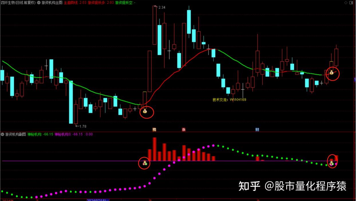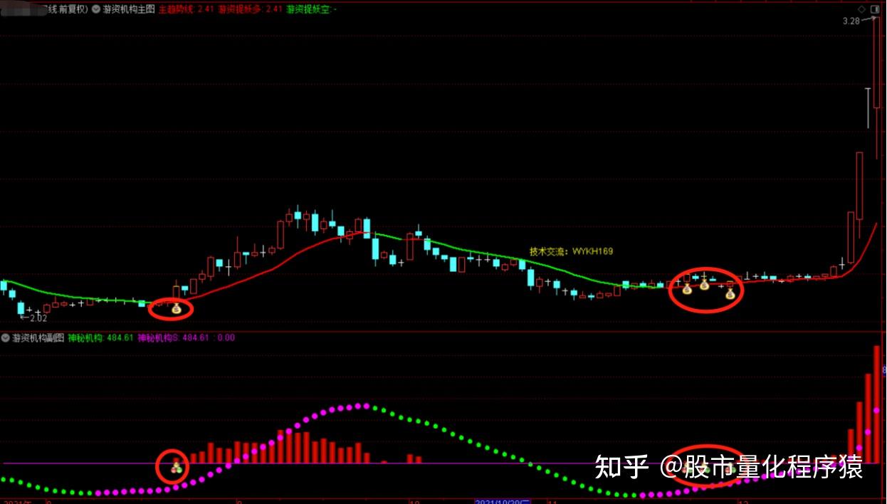 神秘机构三红系统指的是主图红线+副图红柱+副图洋红色圆圈,形成的游资主力共振买入信号,从买入到卖出的过程;用来监控游资主力的短期买和卖的信号;
